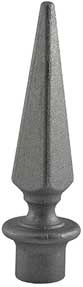 Spear Head Pyramid female 19 mm Part Number MS758 Pyramid female to fit over 19 mm round tube Registered Design. female 19 mm, Height 148, Width 42. Material: Aluminium
