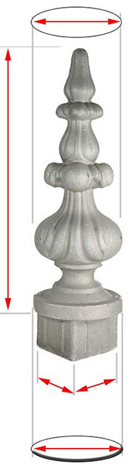 Aluminium post spear to fit a 65x65 mm post. Part Number MS928, Spear top post to fit 65x65 mm tube Registered Design. Height 260mm, Width 88mm. Material: Aluminium